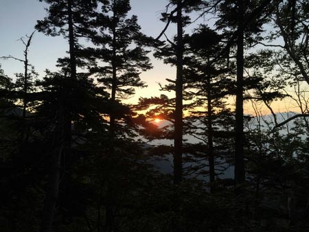 登ってきた登山道(一ノ沢)が沢沿いということもあり、増水の危険性が考えられたので、ここはもう濡れるの寒いの覚悟で夜明け前に出発することにしました。