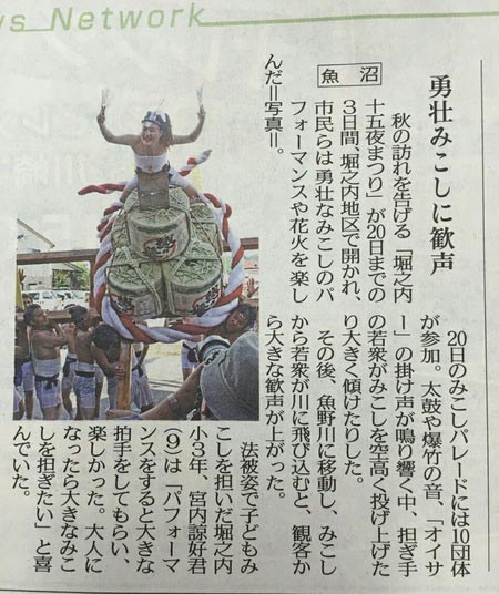 先週に行われた魚沼市堀之内十五夜祭りが、