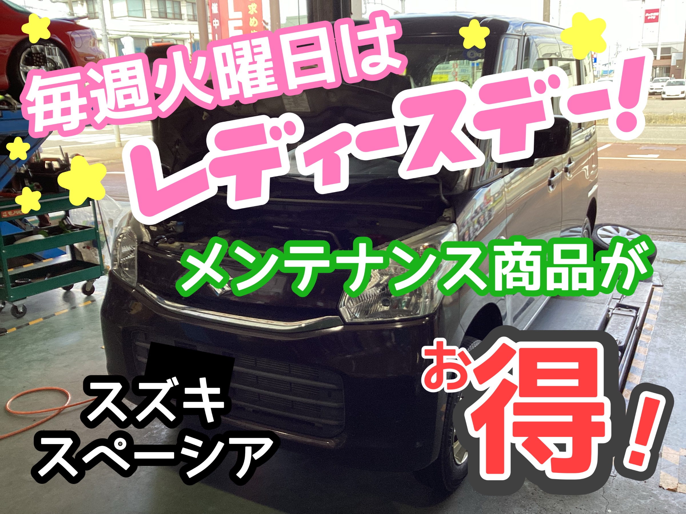 女性の方必見です!!メンテナンス商品がオトクに!?スズキ スペーシア