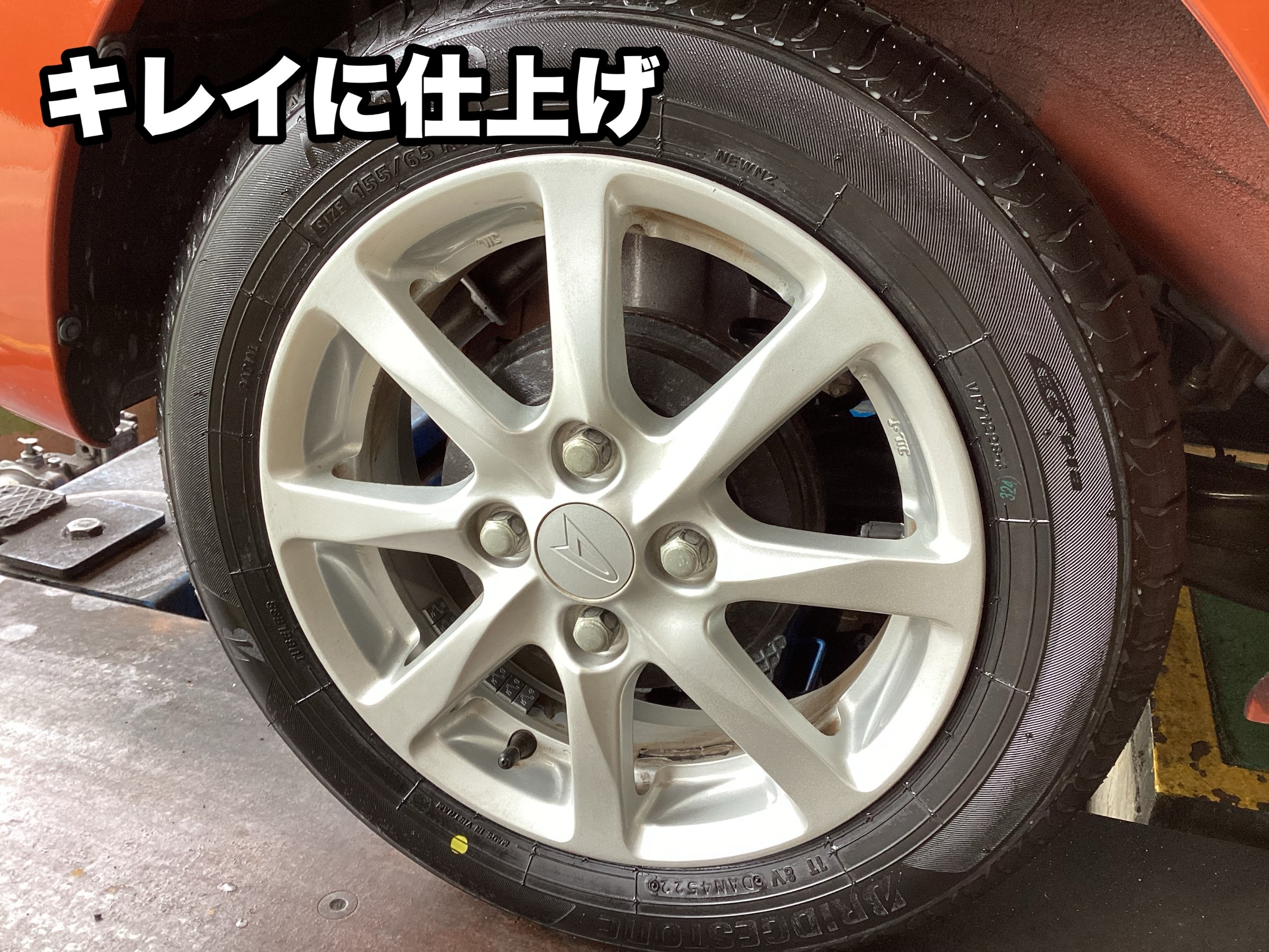 取付してタイヤワックスでキレイにしていきます。