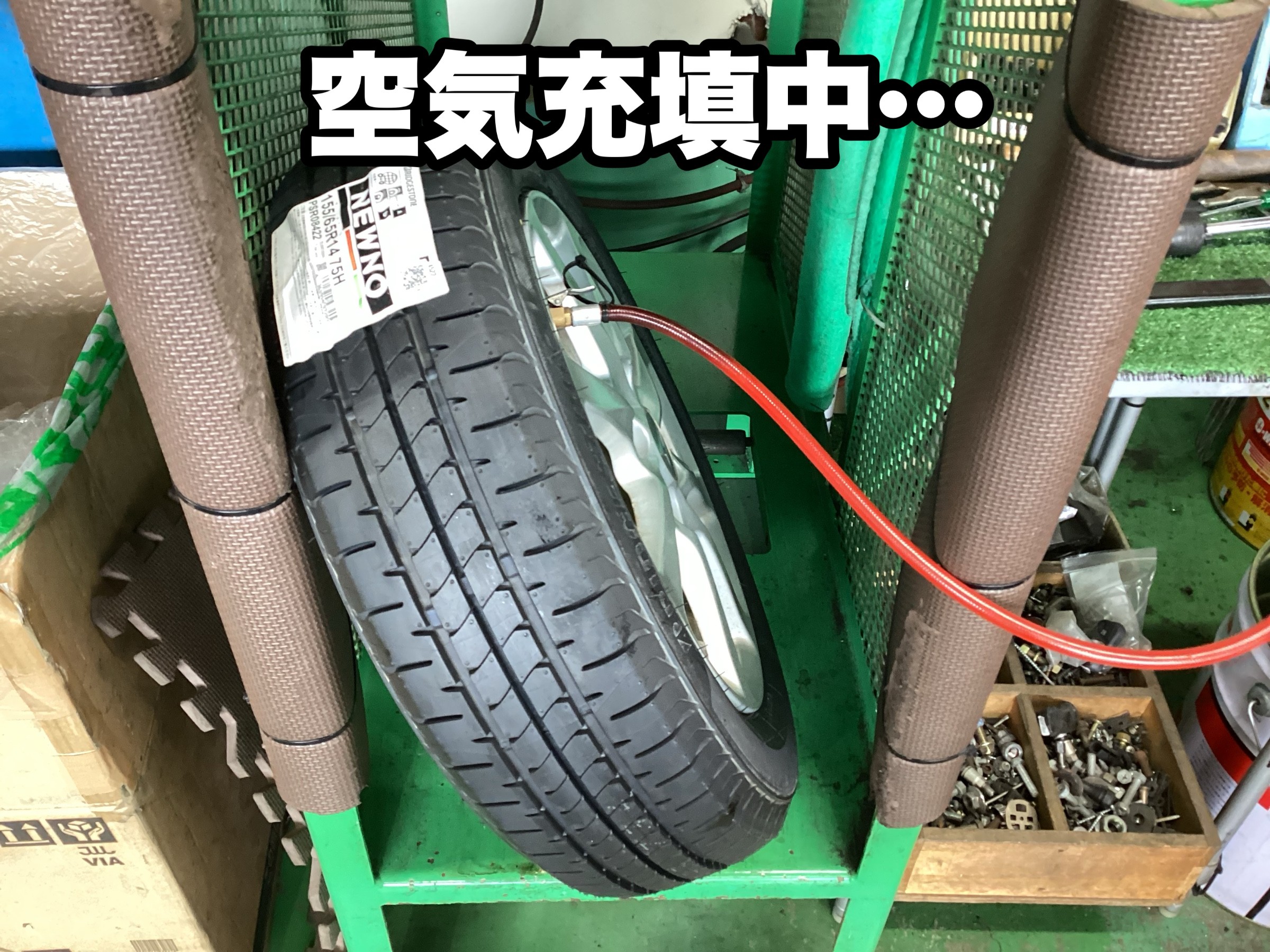 タイヤを組んだので、空気充填をしていきます。