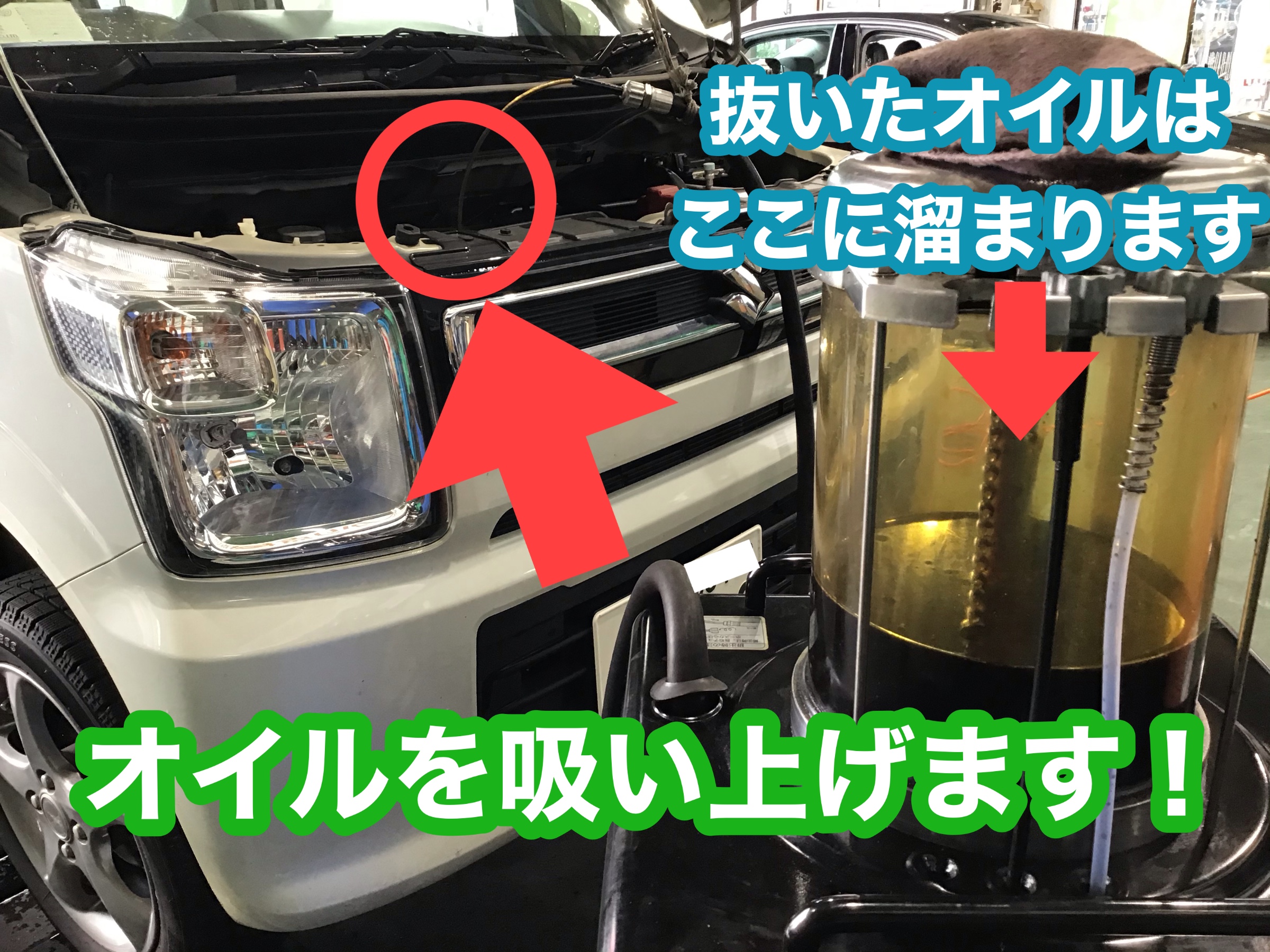 オイルを上から抜きますよ!
