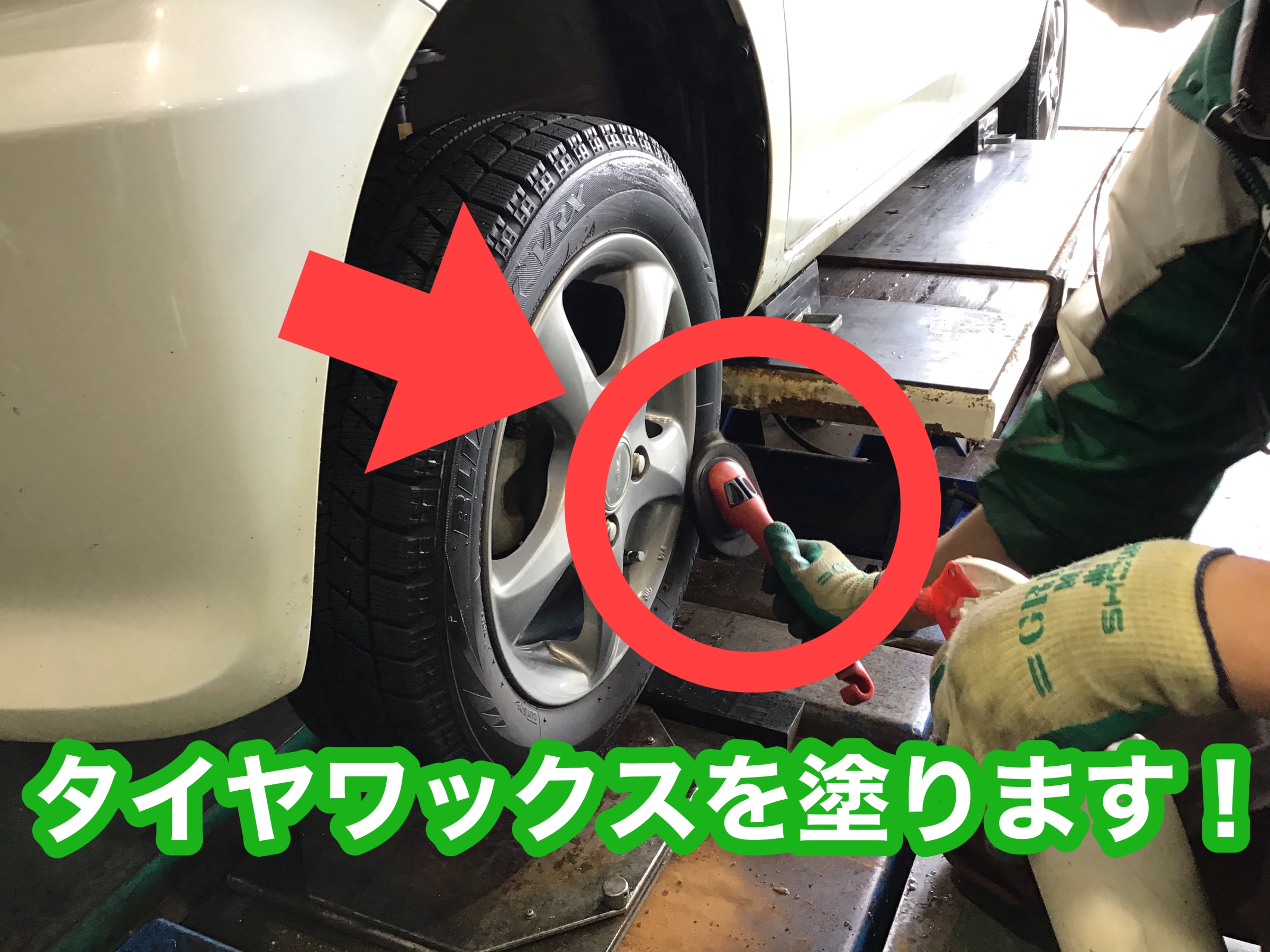 タイヤワックスを塗って