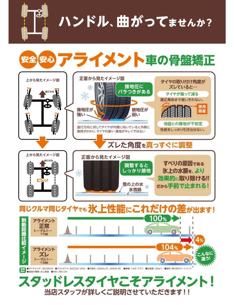 タイヤの取付角度がズレていると
