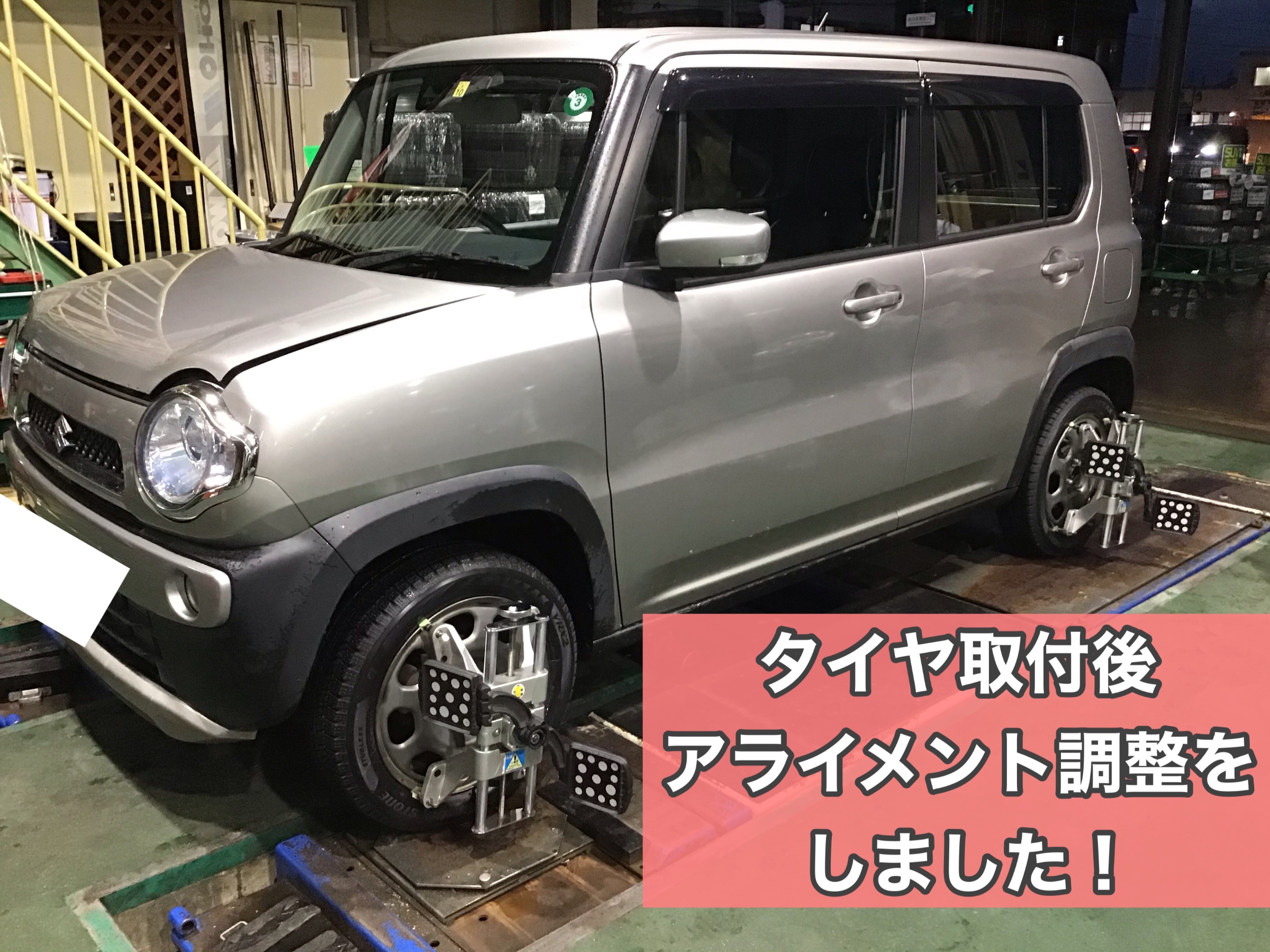 【スズキ ハスラー】新品タイヤ&タイヤ長持ち作業のアライメント!!