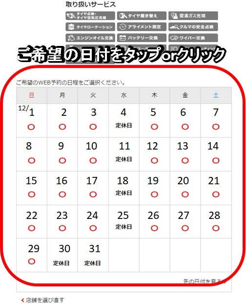 タイヤ点検・安全点検/タイヤ履き替え/オイル交換/その他ピット作業の予約