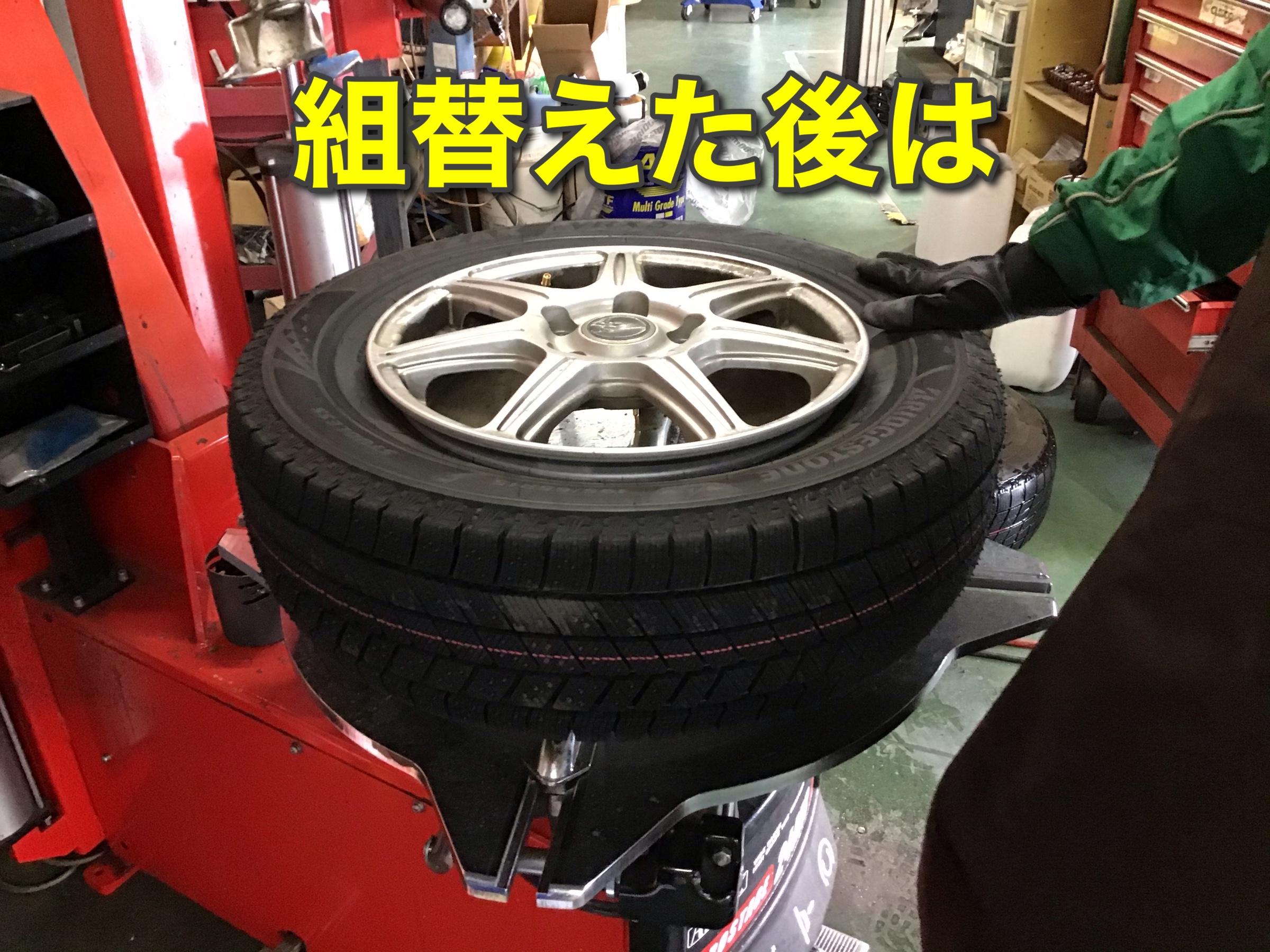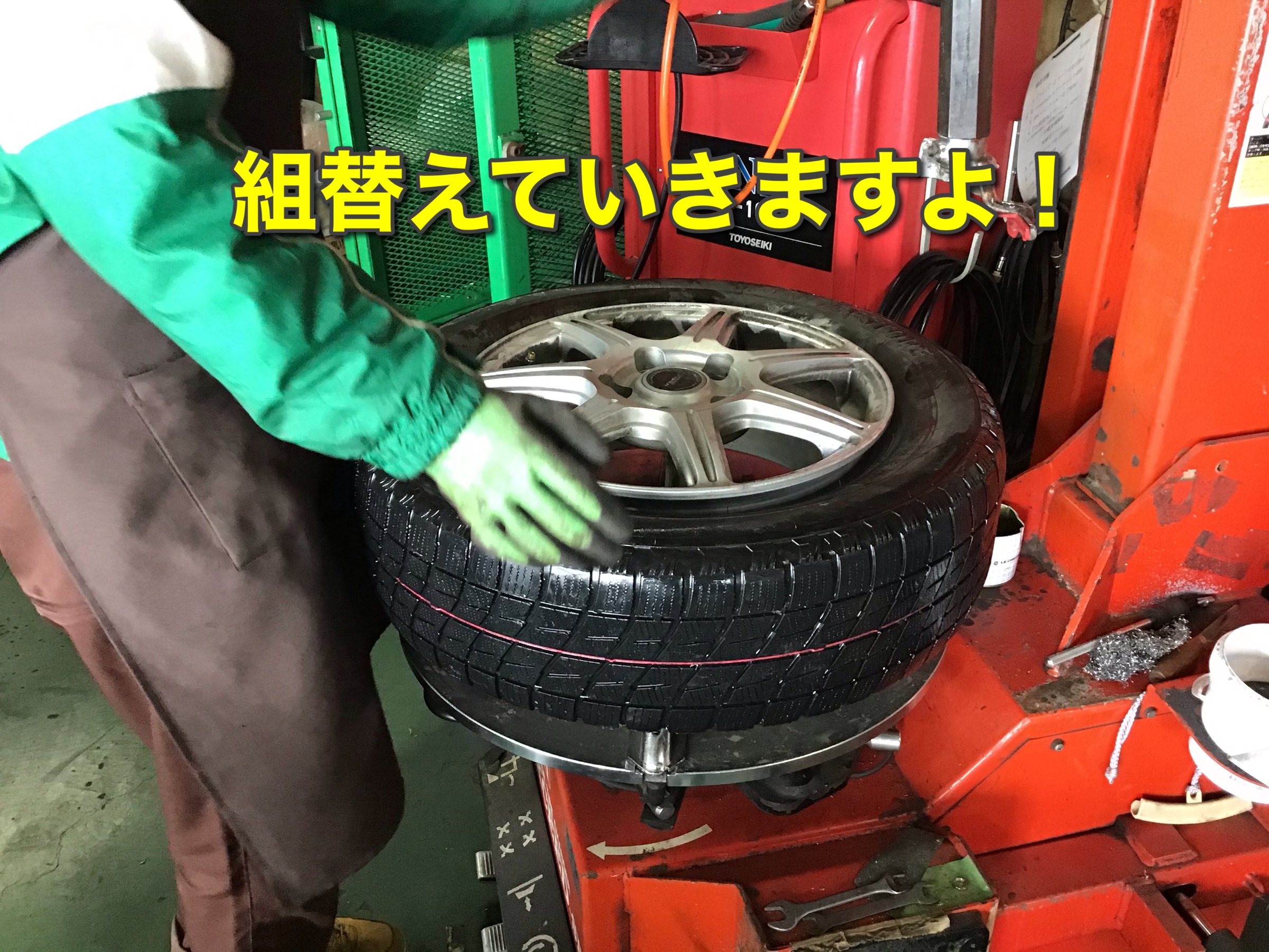 新しいタイヤを組付けて行きます。