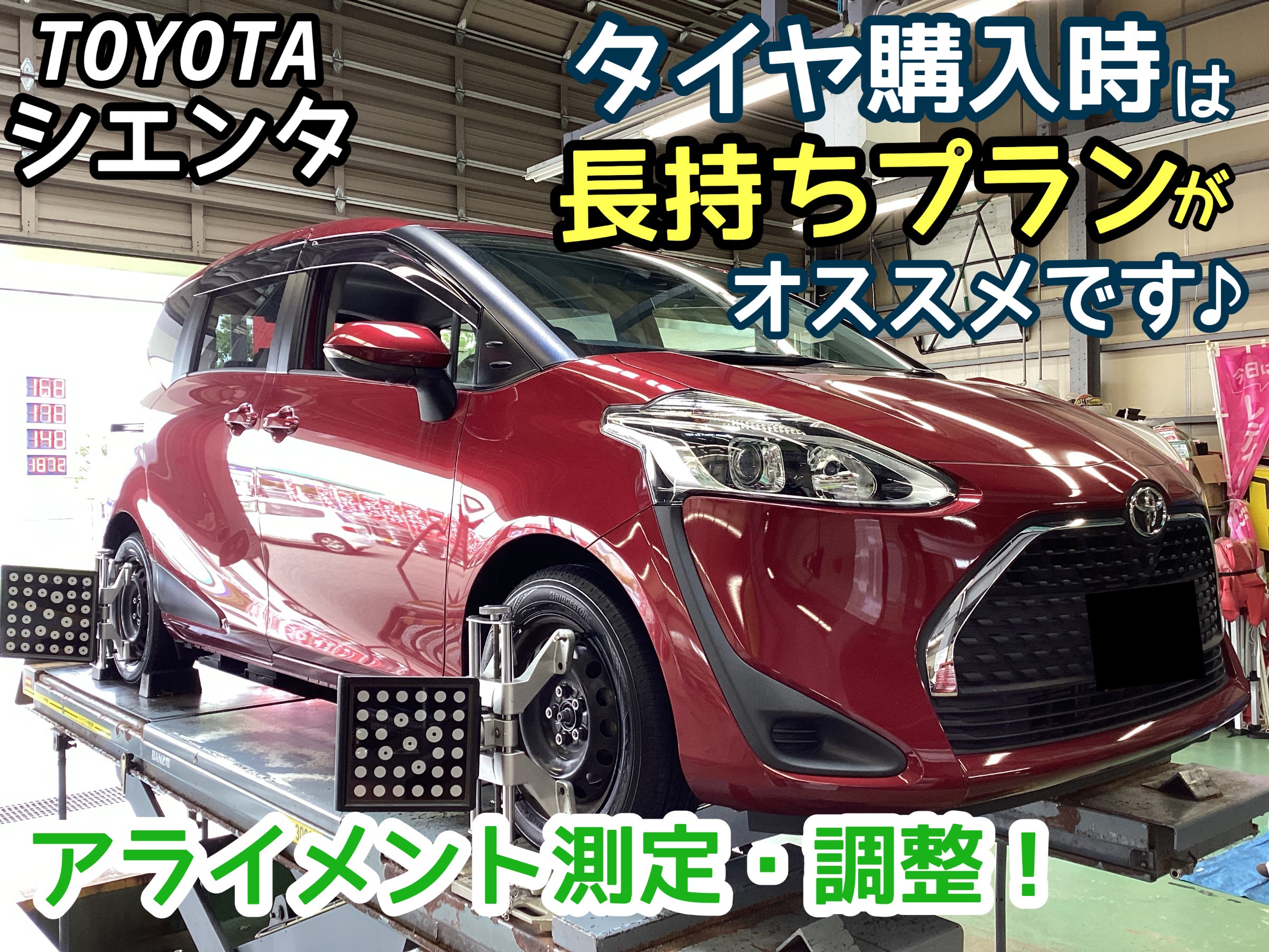 アライメント調整でタイヤを長持ちさせませんか?長持ちプランもございます!【トヨタ シエンタ】アライメント調整