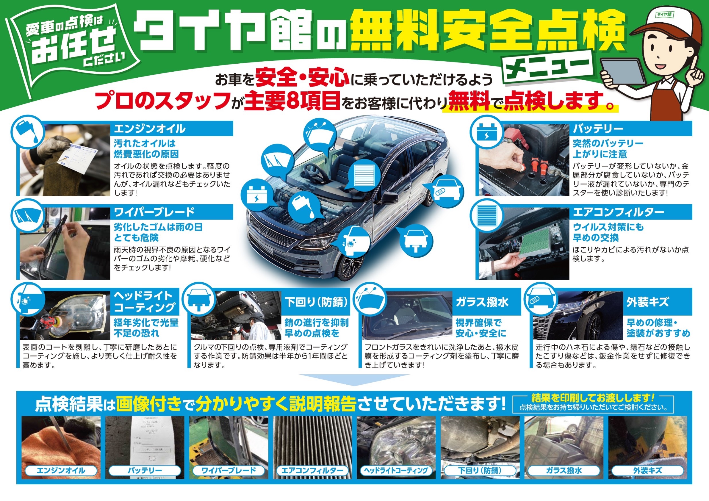 もちろんタイヤの空気圧点検やお車の無料安全点検も