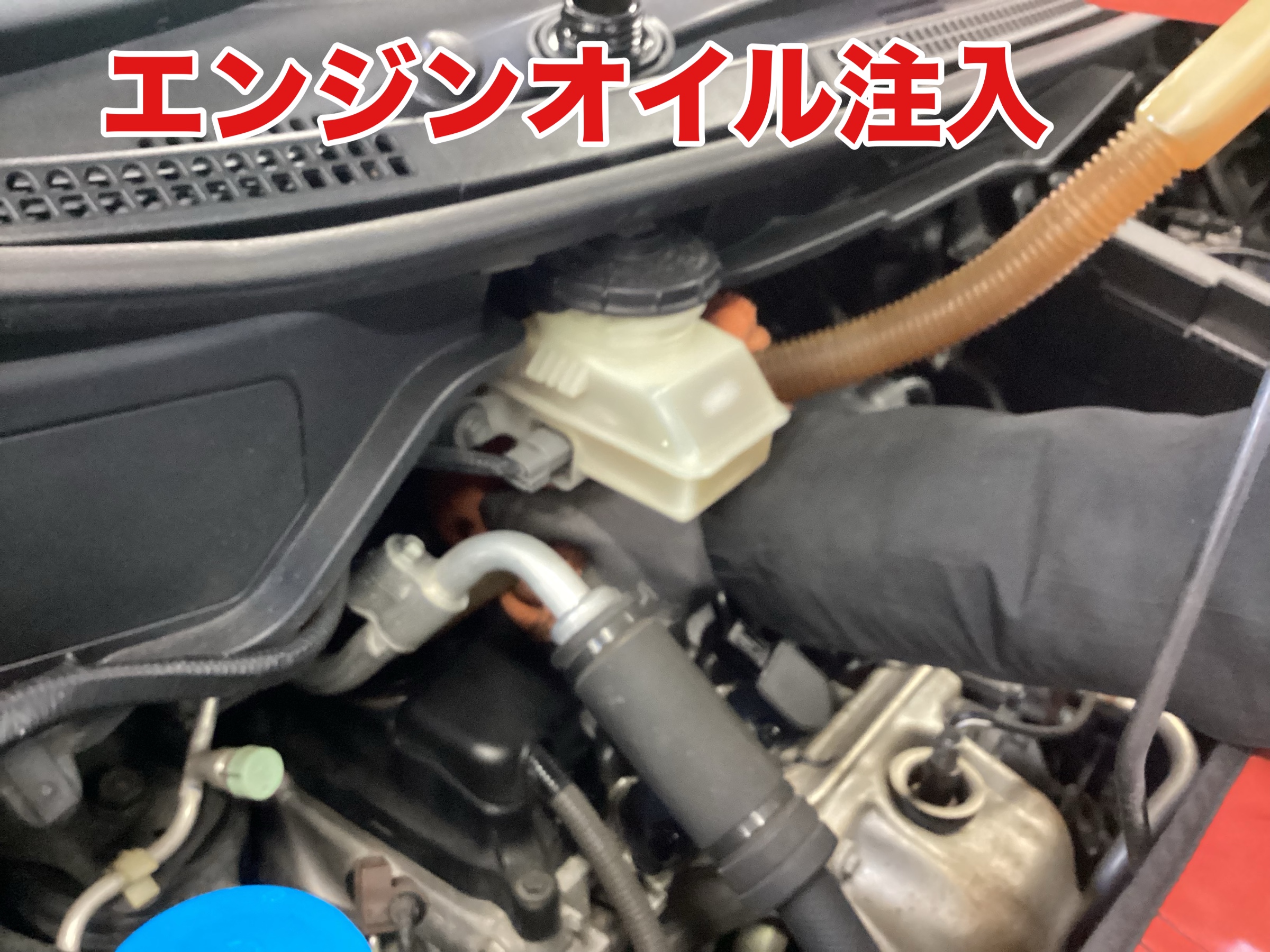 作業に戻って、エンジンオイル注入です!