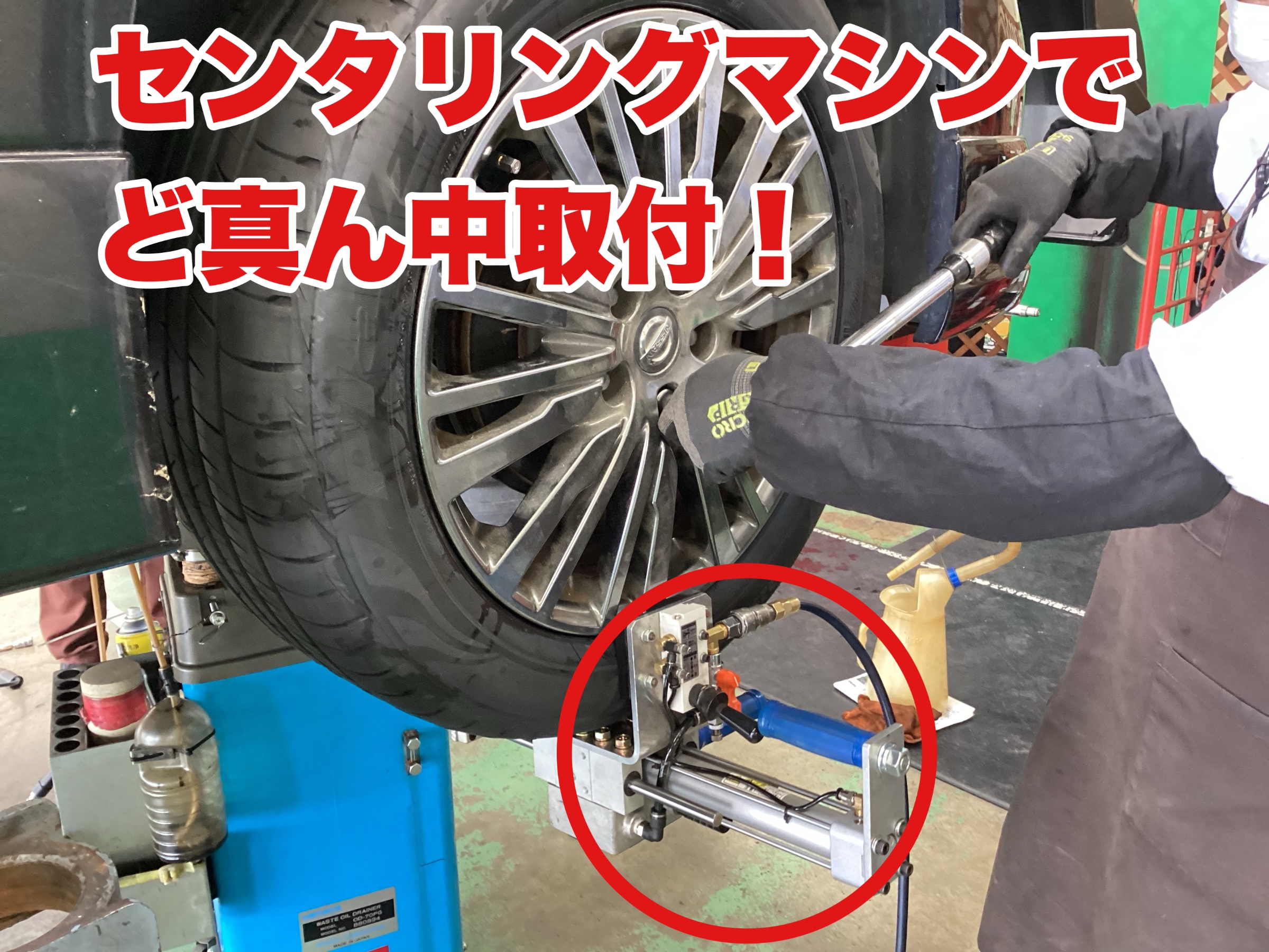 窒素充填後はホイールバランス取りをして