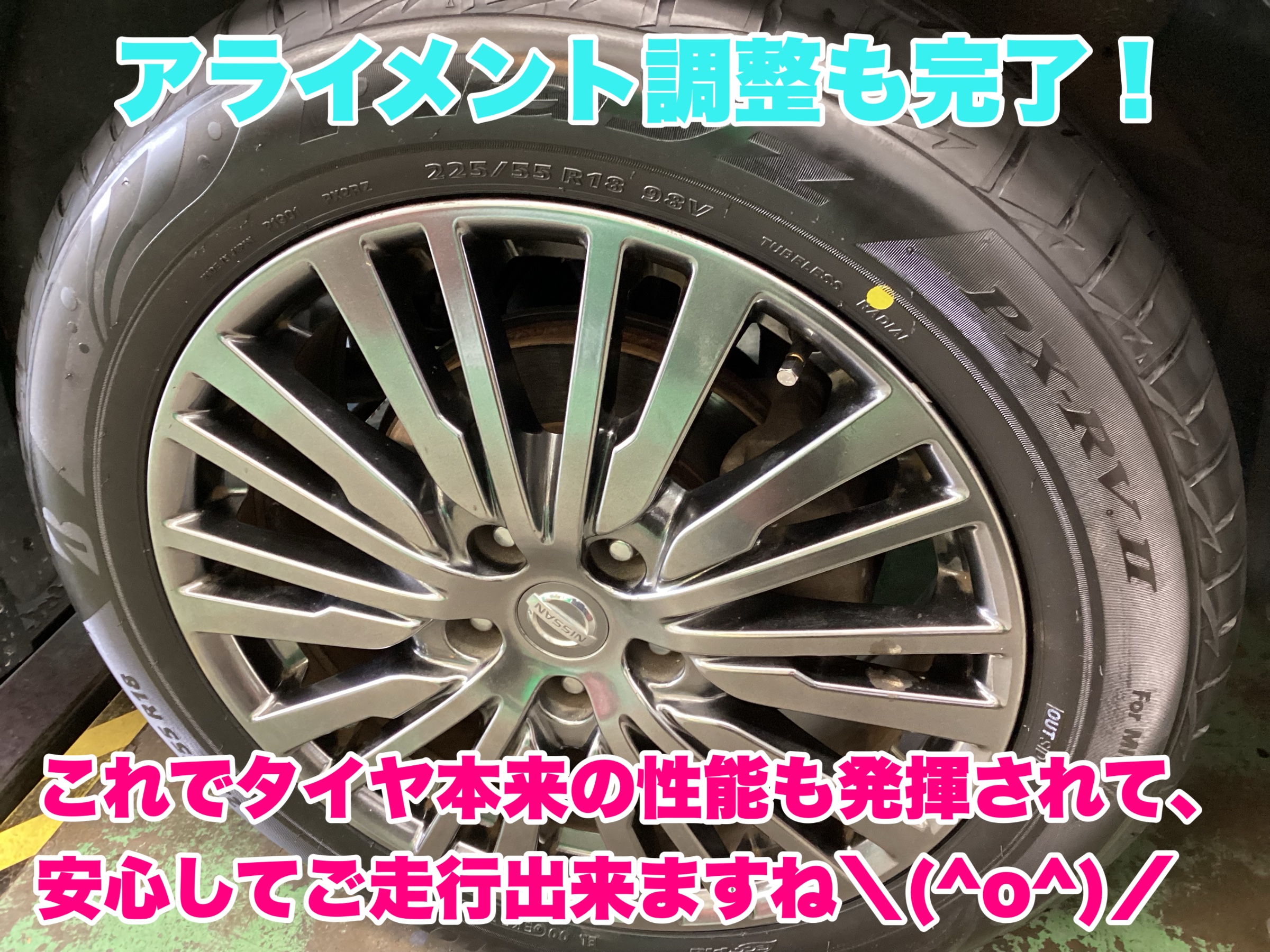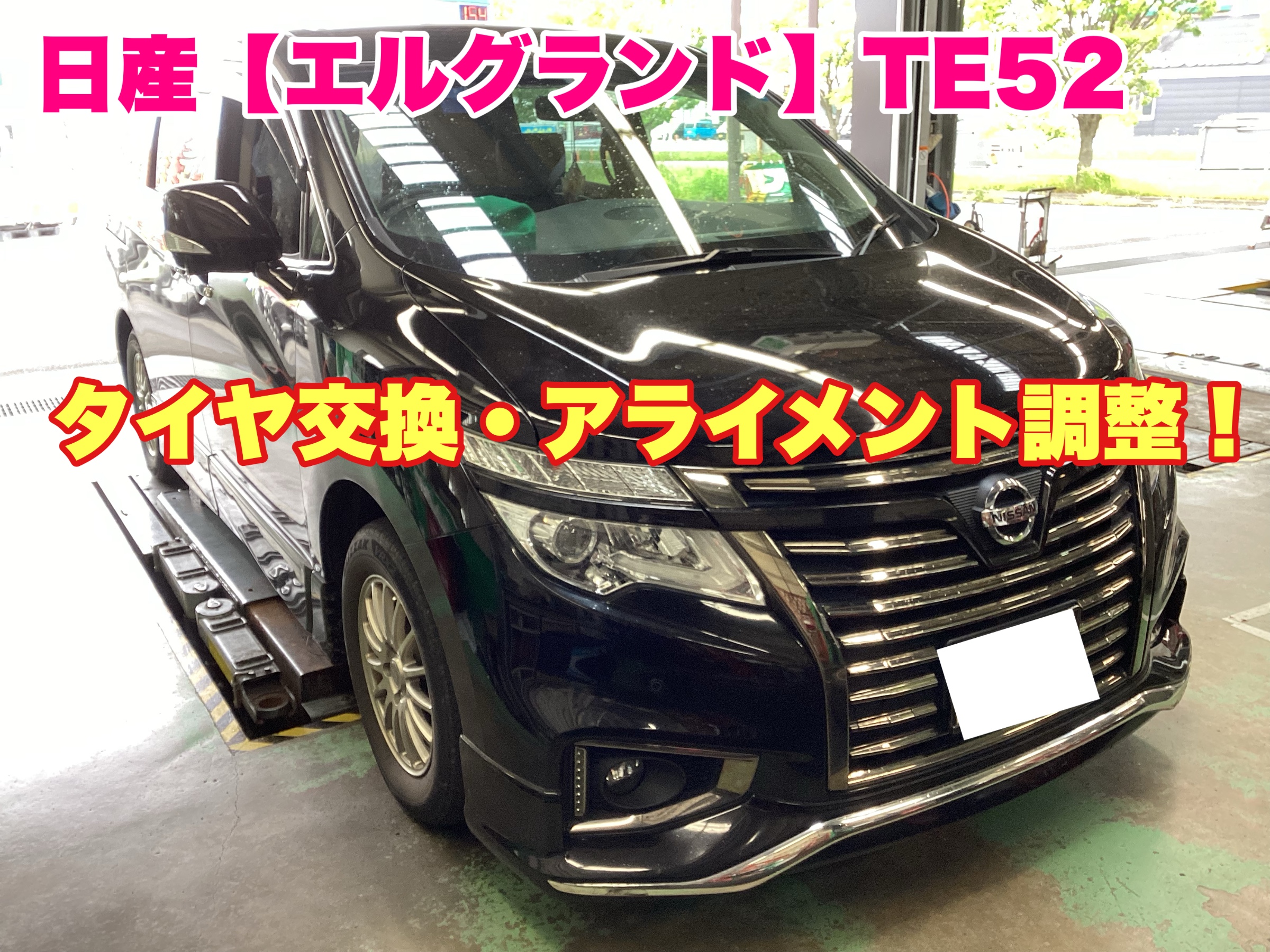 アライメント調整は新品タイヤ装着と一緒がオススメ!(日産 エルグランド)