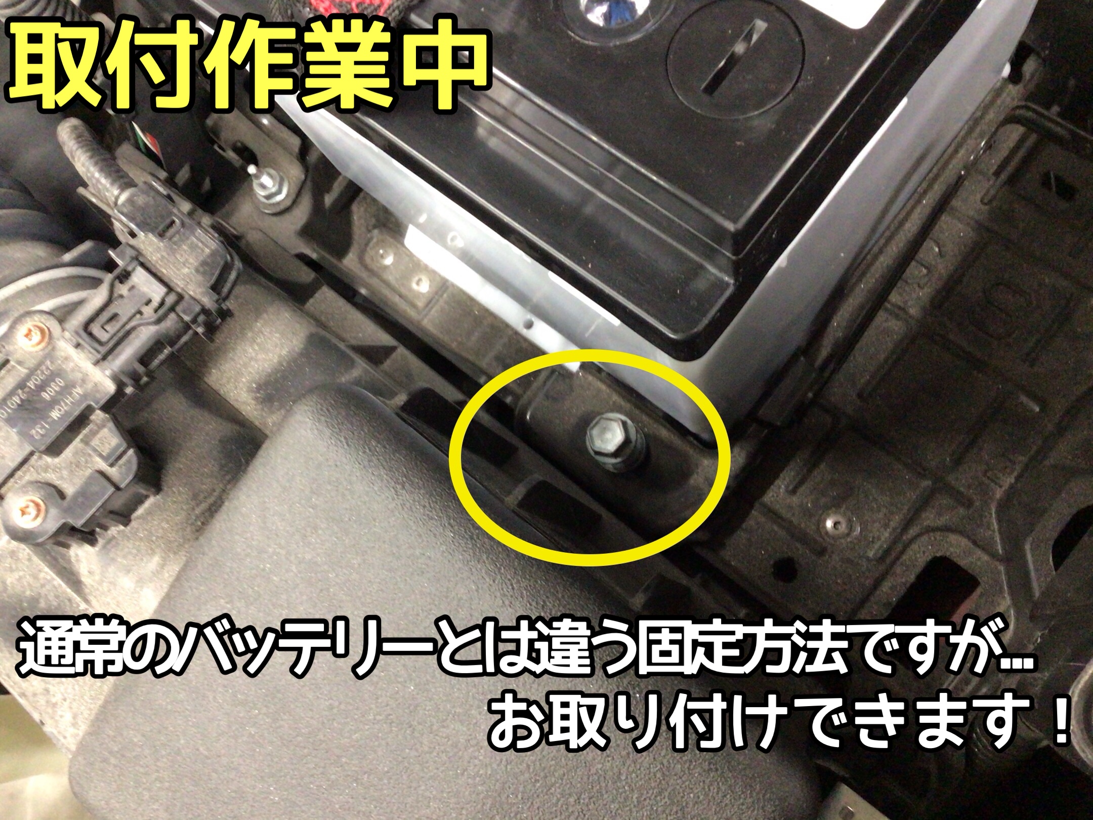 バッテリーの固定方法が今までの国産車とは異なります。