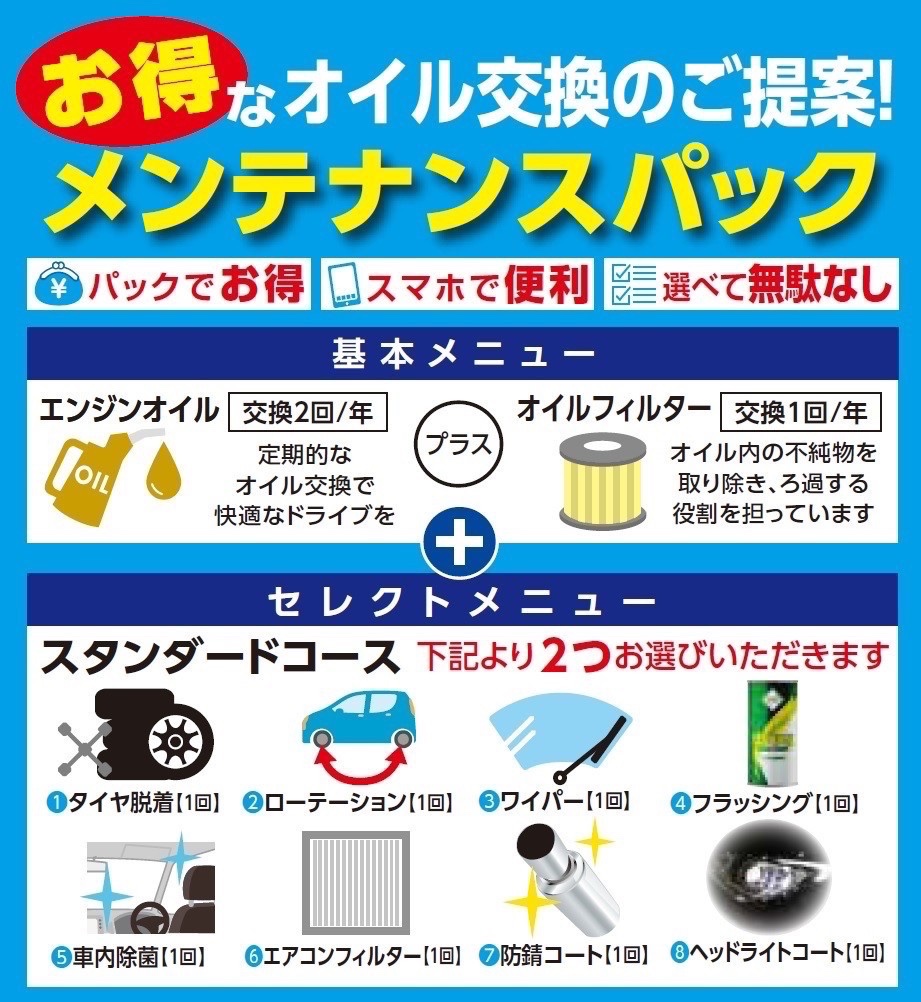 お得なメンテナスパックがお得で便利です☆