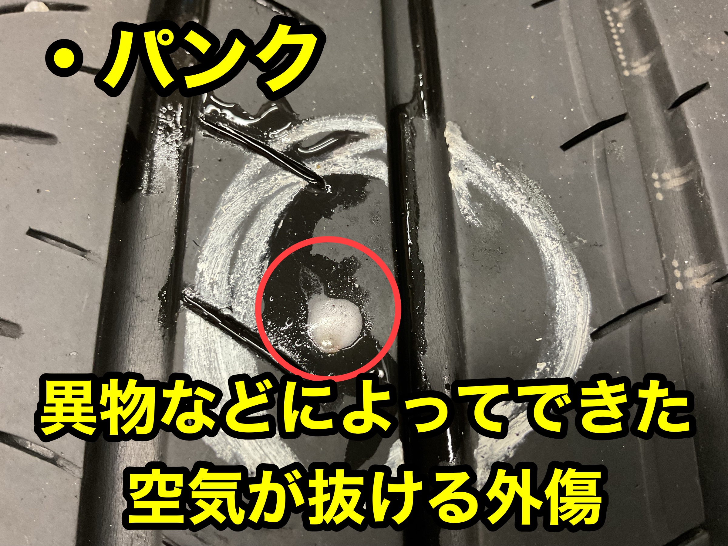 上記の写真は釘刺さりによるパンクです