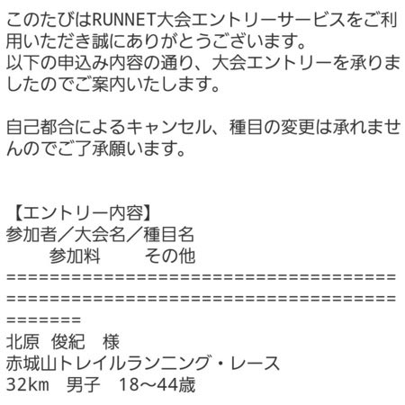 トレイルランニングレースにエントリー完了の北原ですっ!!