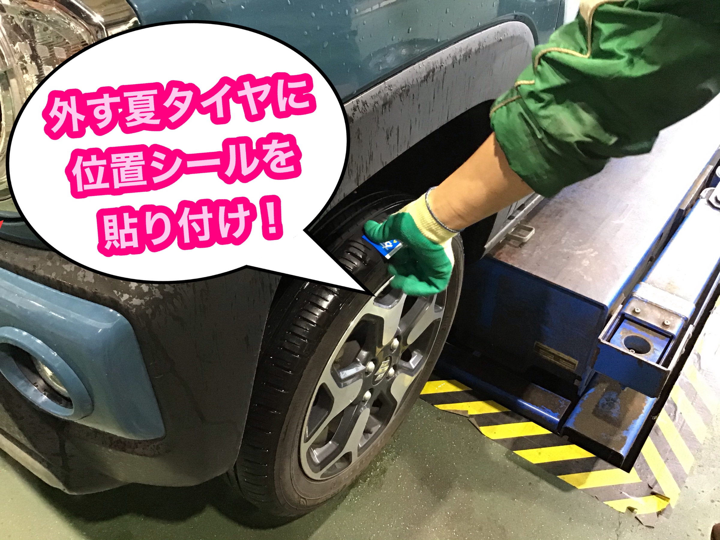 夏タイヤに位置シールを貼ります!