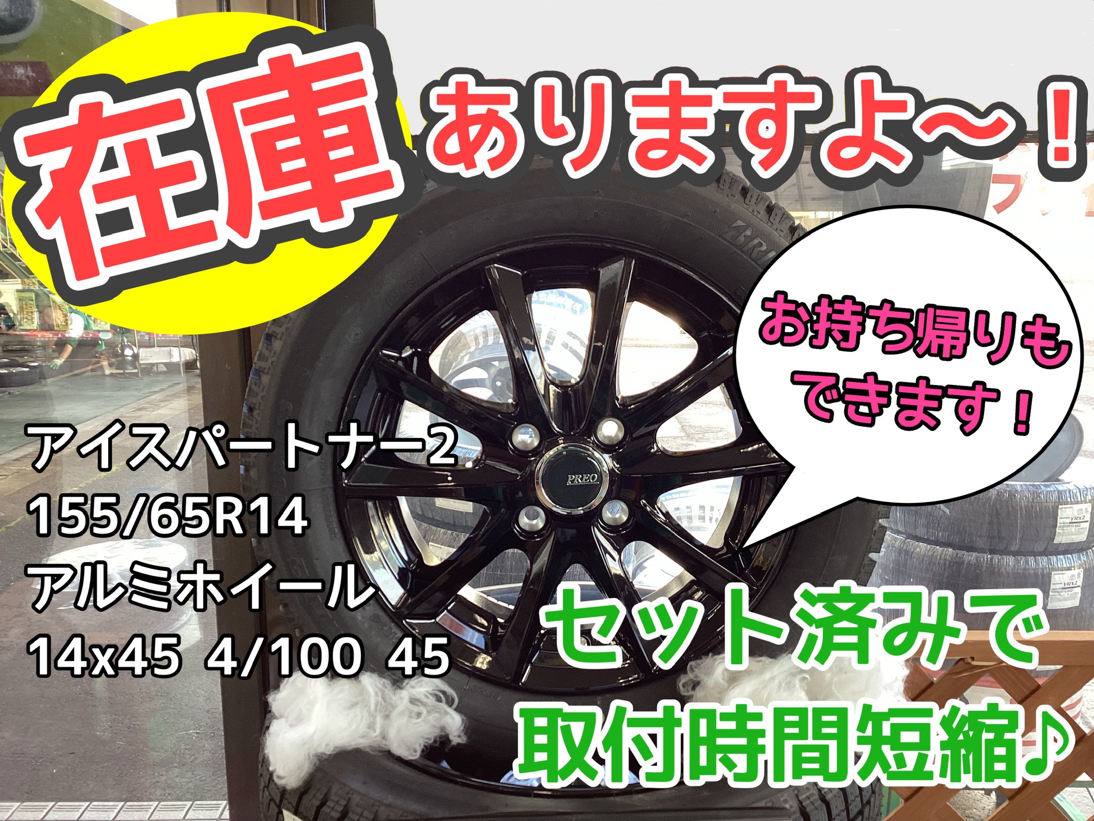 セット済みのスタッドレスタイヤあります☆セットされているので時間短縮ですよ~♪