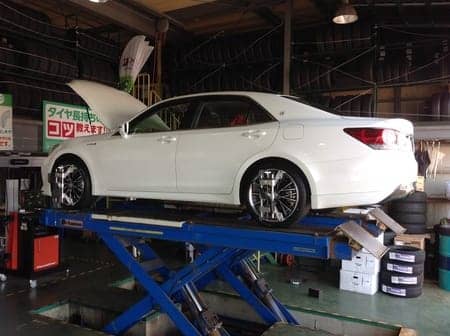 タイヤサイズの変更にともない、四輪アライメントでタイヤの取り付け角度を修正!