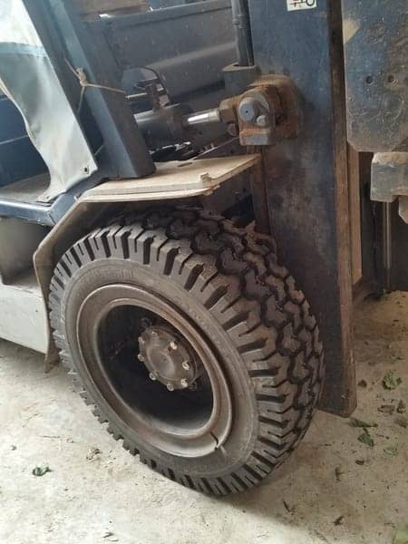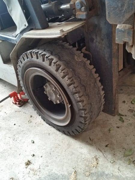 先週にお得意様の働くクルマ・・・フォークリフトのタイヤ交換をさせて頂きました。
