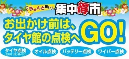 クルマでお出かけ前はタイヤ館の点検へGO!