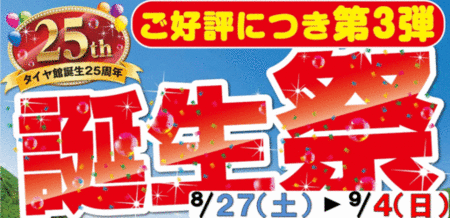 さて、タイヤ館小千谷では本日27日(土)より『25周年記念セール』の