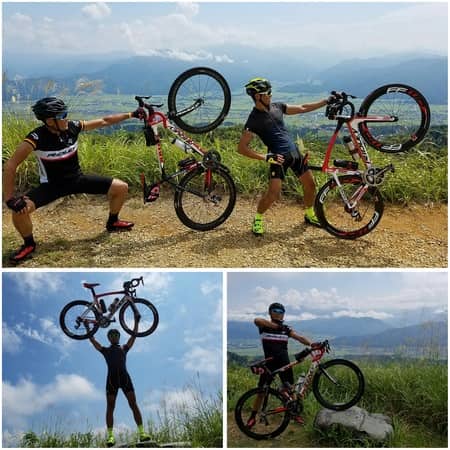 斜度5~14%の坂道がひたすら続き・・・仲間も汗だく・・・