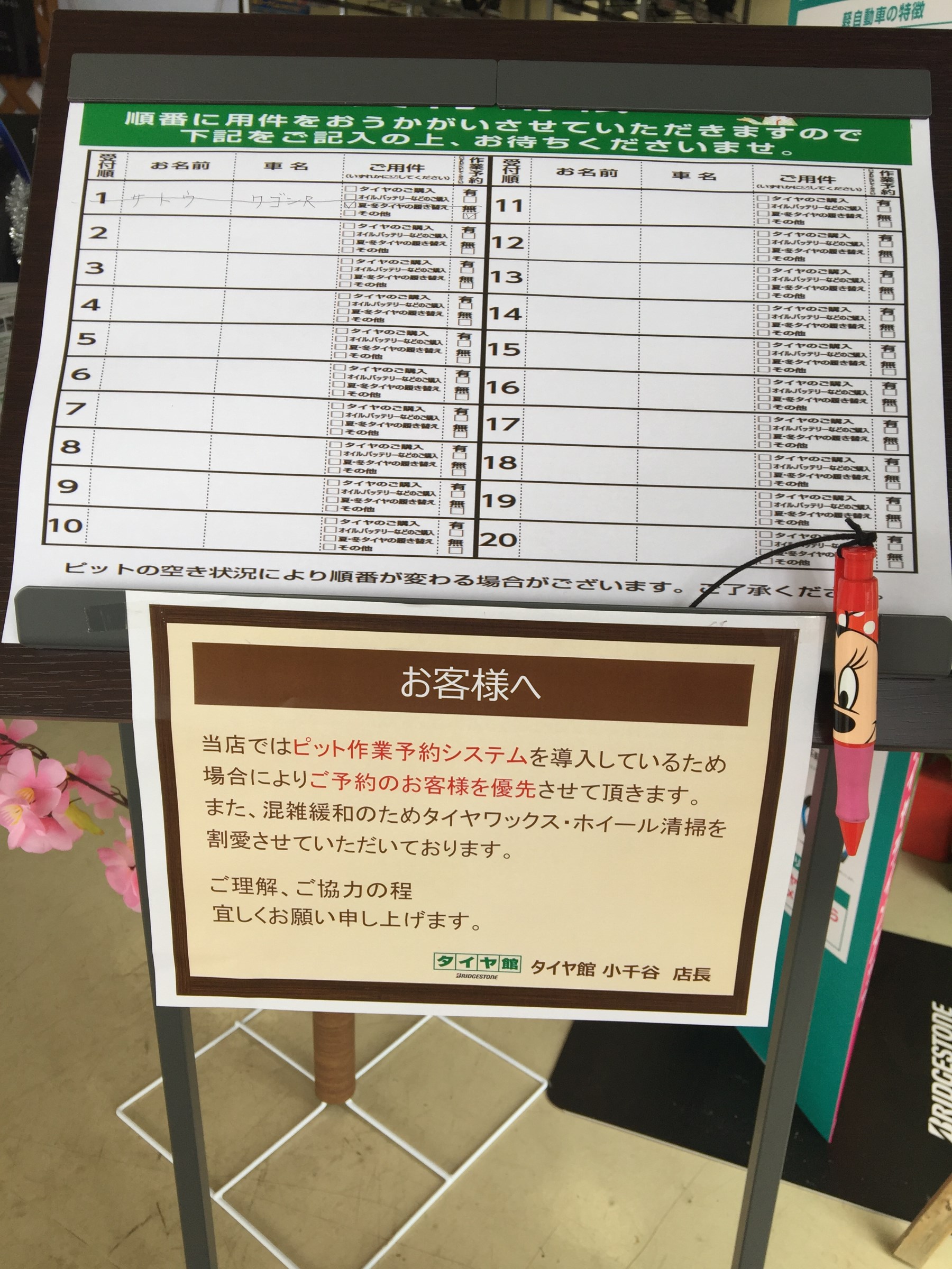 タイヤ交換繁忙期の為ウェルカムボード設置いたしました。