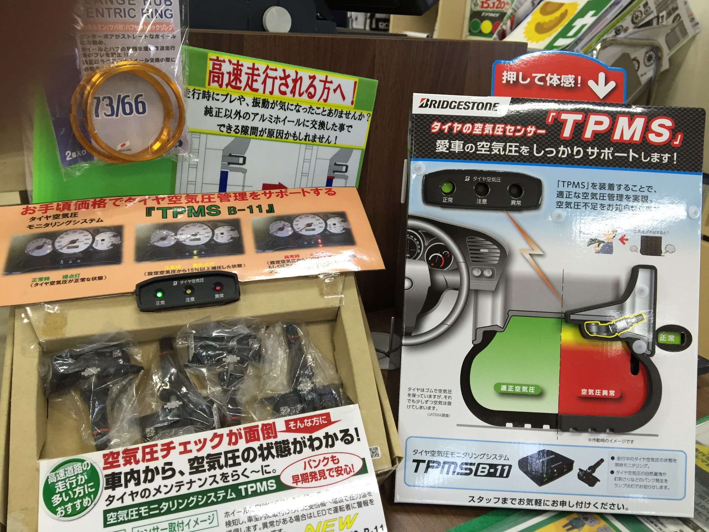 そこで当店では、空気圧の管理を教えてくれるアイテム「TPMS」(タイヤ空気圧・モニタリング・システム)をオススメしております。