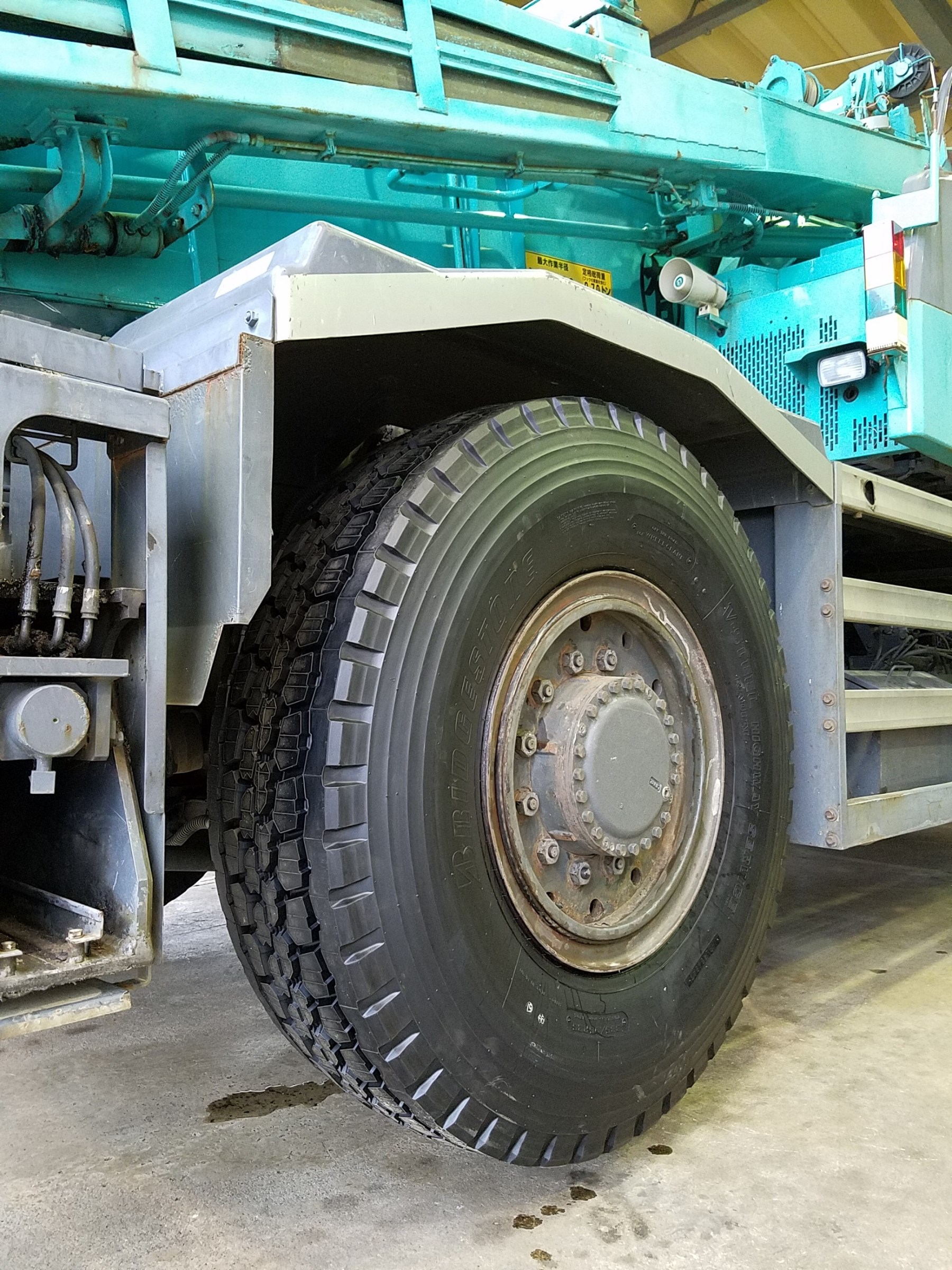 いつもお世話になっているK社様の30t大型クレーン車のタイヤ交換のご紹介です。