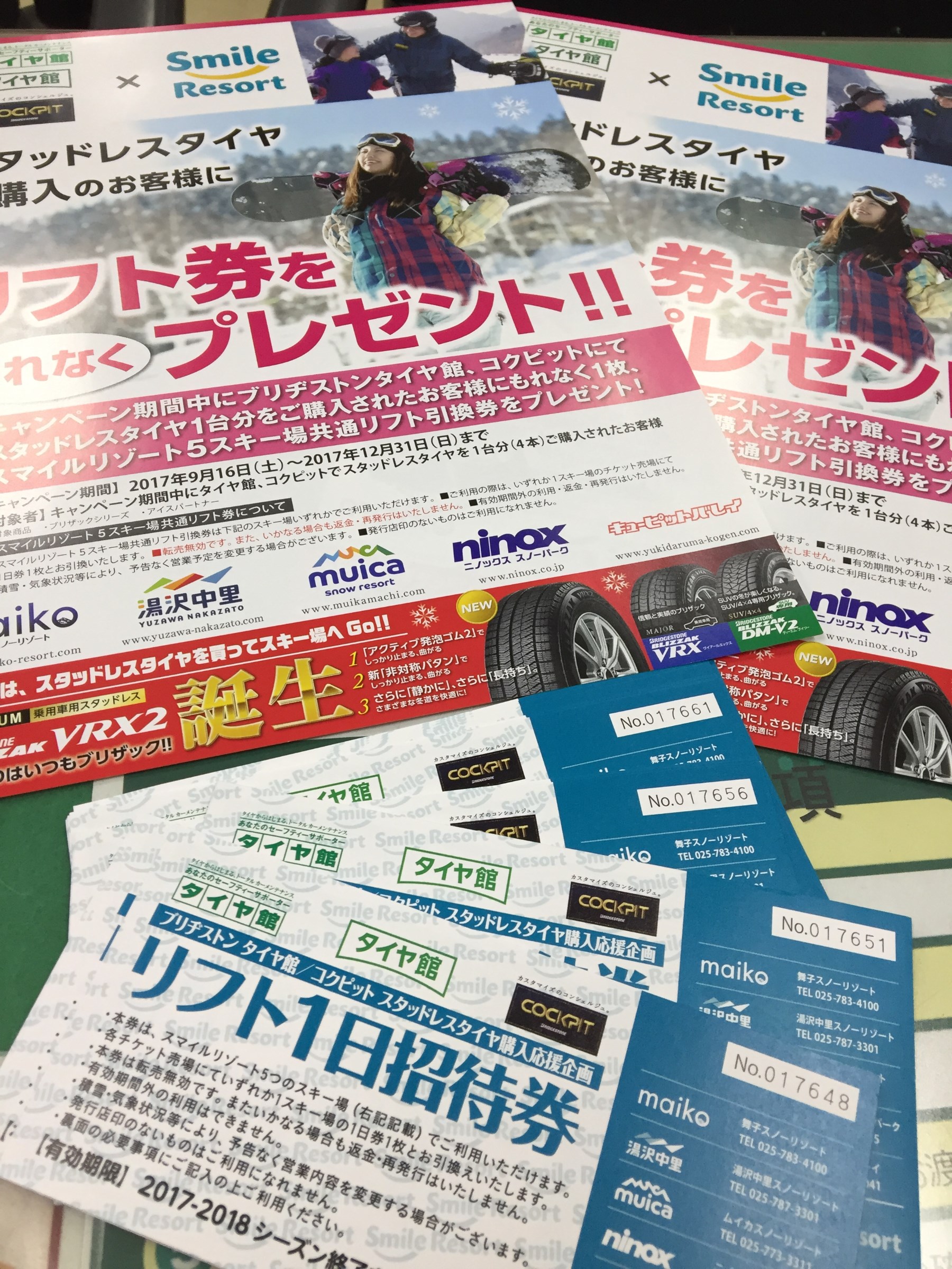 期間中スタッドレスタイヤ4本御購入の方にスキーのリフト券をプレゼントしております!