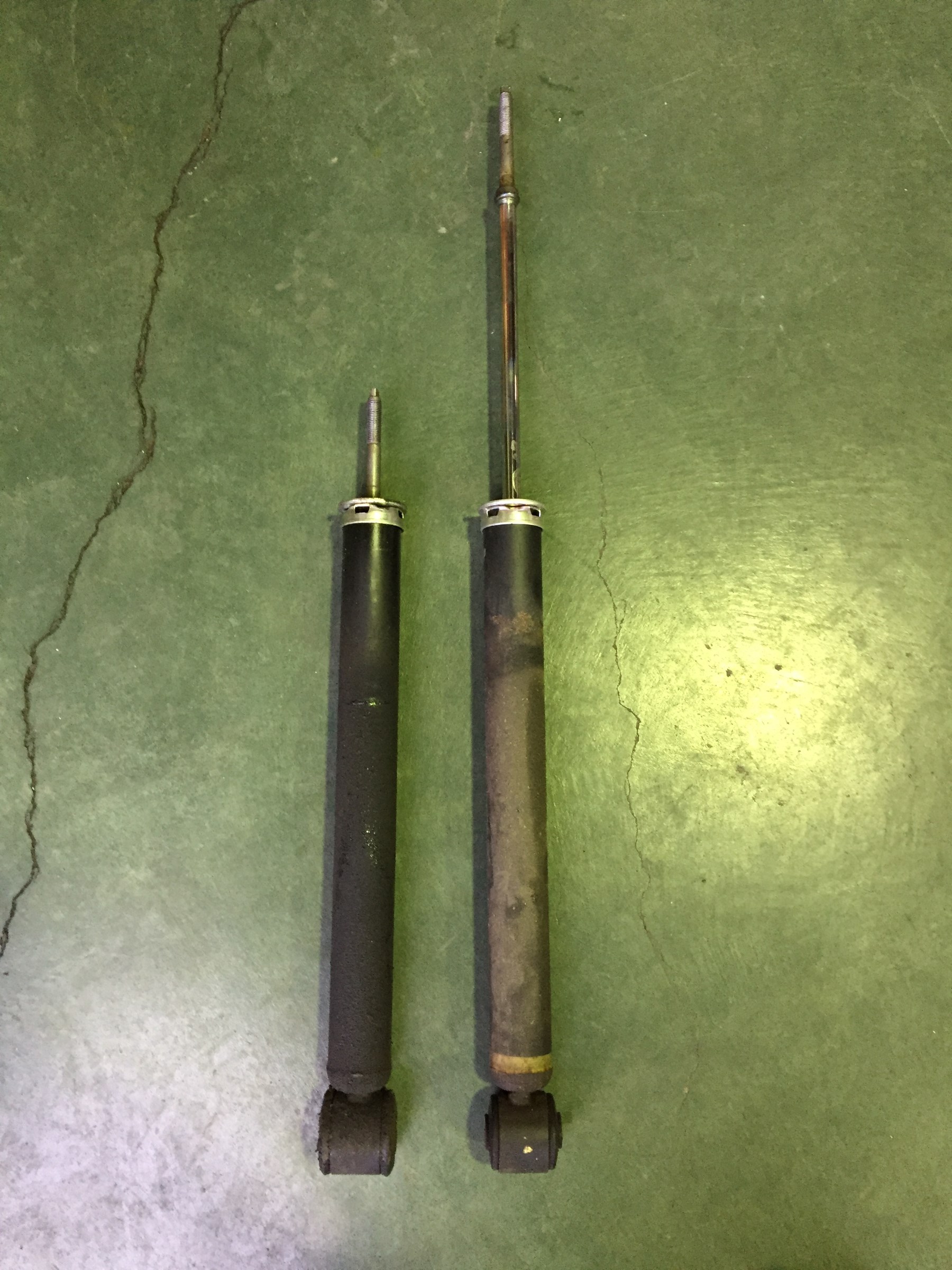 左側はオイル漏れでダンパーが縮んだまま伸びなくなってしまい機能していない状態でした。