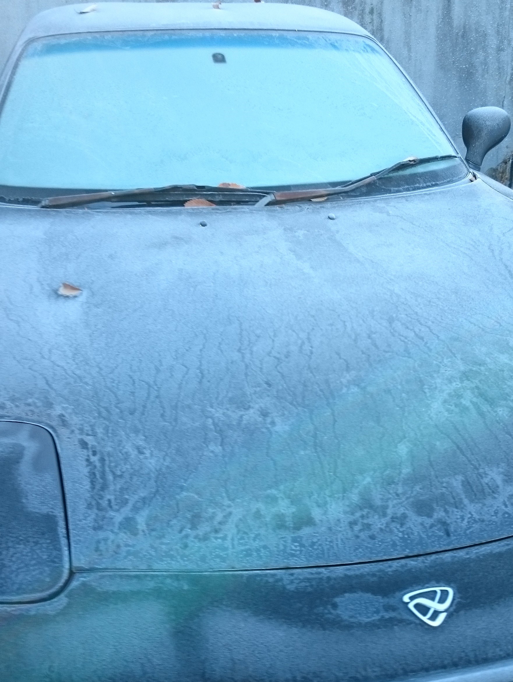 気温が低く、霜が降り凍っていました!これでは夏タイヤで走れませんね!