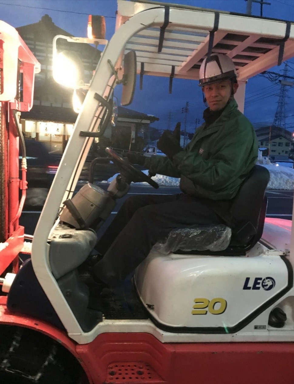 毎年冬には大活躍のフォークリフトで除雪作業するので雪になんて負けません!!