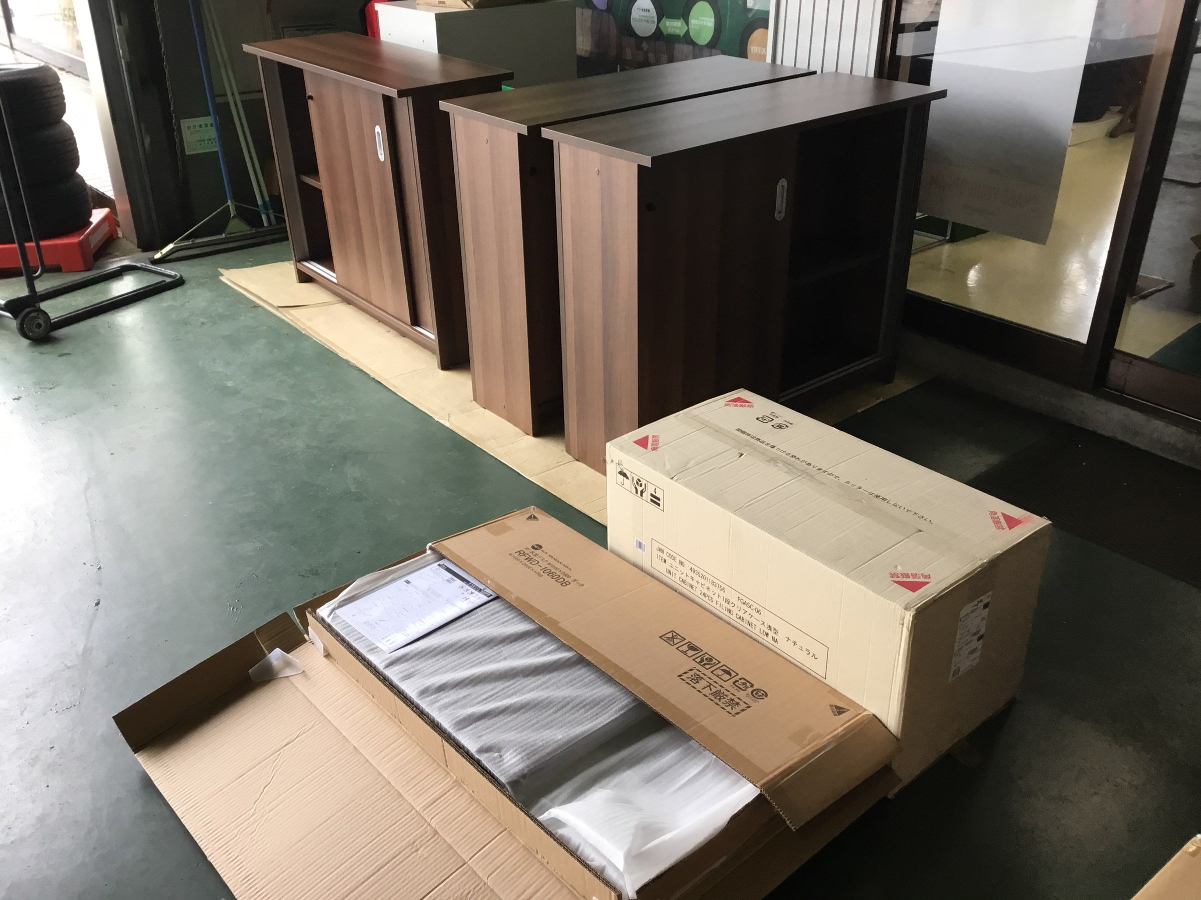 店内改装では棚や机など入替の為、新しいものを組み立て中!