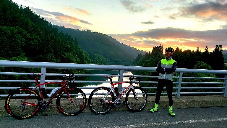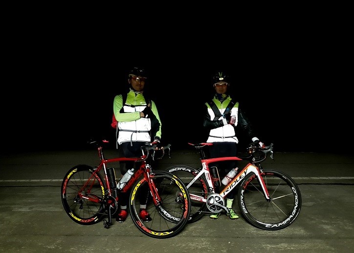 真夜中の峠は真っ暗の中自転車のライトだけが頼りでした。