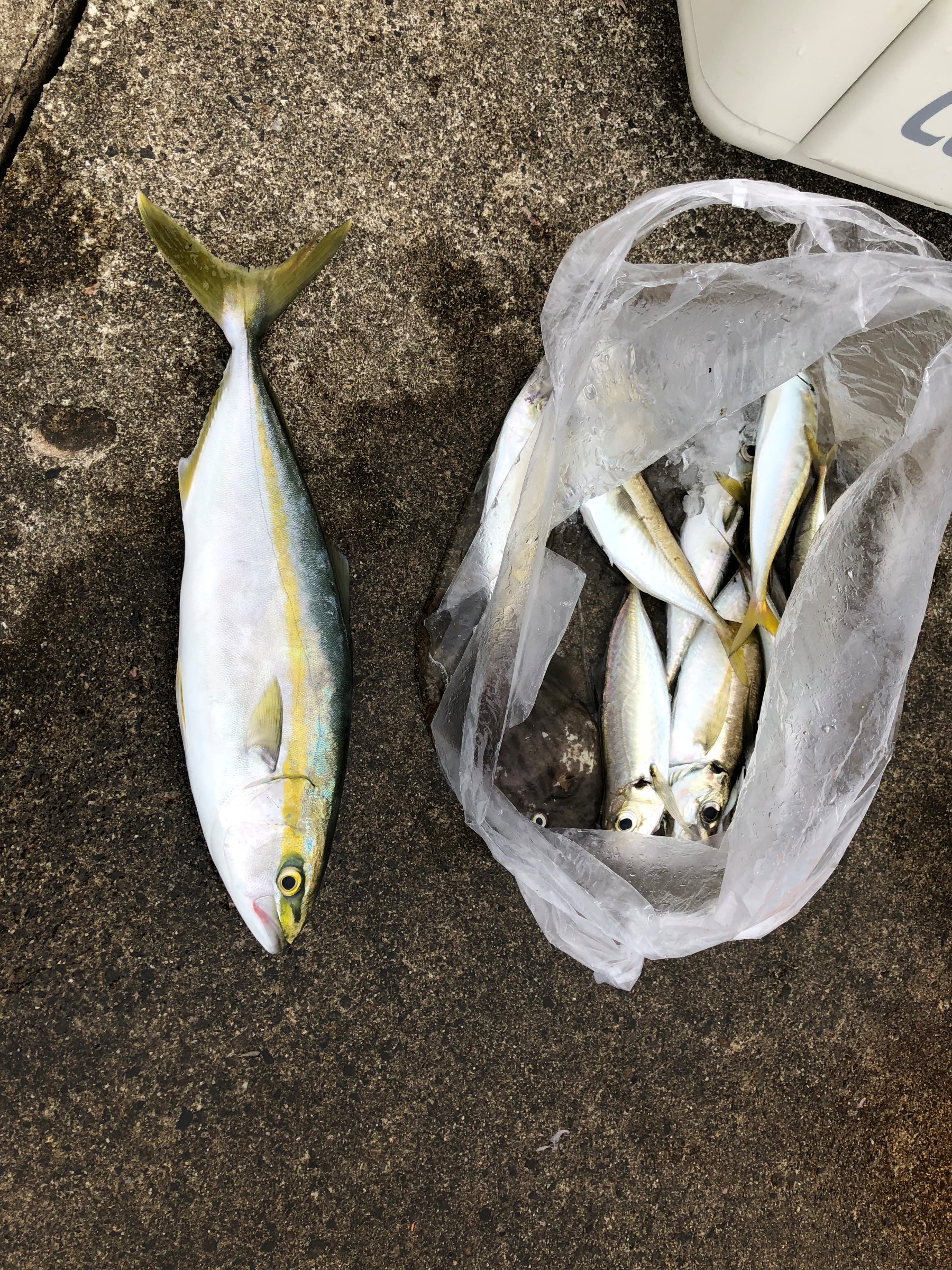 大漁でした!袋に入っているのはアジが数匹とカワハギが一匹です。