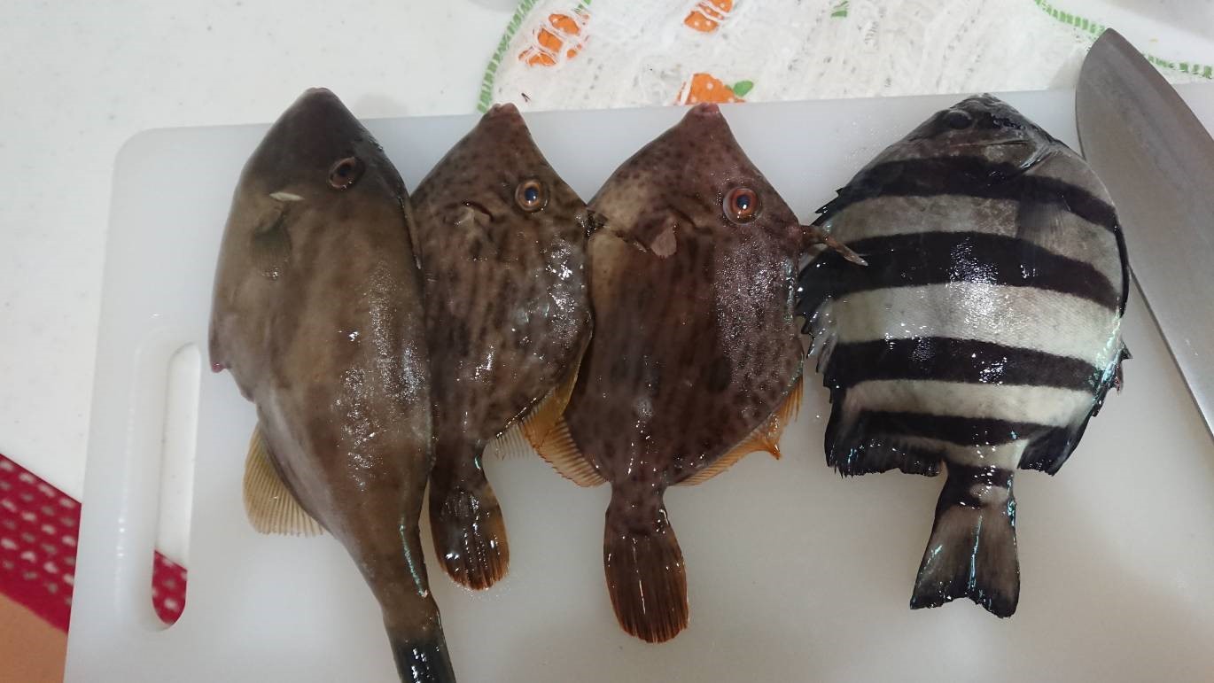 アジはフライにして、サバはみそ煮にしてもらいました!カワハギ・シマダイ?は焼きにしました!