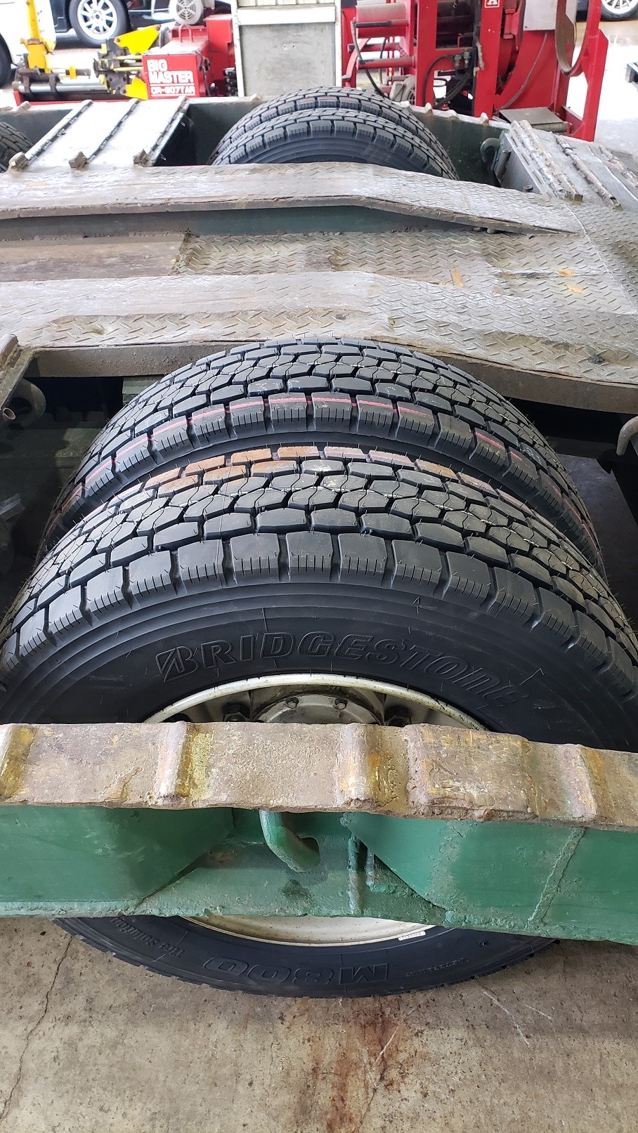 働くクルマのと言っても・・・大型トレーラーの台車用のタイヤ交換です。。。