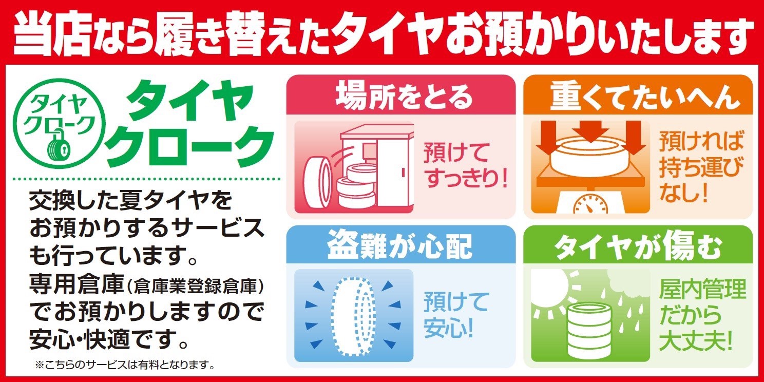 『タイヤクローク』サービス(お客様の大切なタイヤを次の履き替え時期まで倉庫
