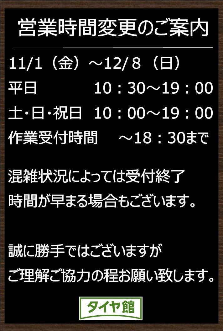 11月1日(金)~12月8日(日)の間、営業時間が変更となります。