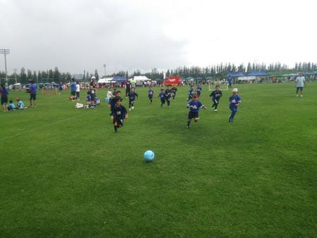 ボールを一生懸命に追う子供の姿に、声援を送る親達の大きな声がグランドに