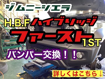 みなさんこんにちは☆ 連日暑い日が続きますね(o_o) みなさんも熱中症お気をつけ下さい♪ さて久々の作業紹介☆ 本日は最近人気のジムニーパーツメーカー 【ハイブリッジファースト H.B.F】 の【JB74ジムニーシエラ】ショートバンパー化です。 ホイールメーカーさんのデモカーにも このバンパーがつい...