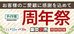 いよいよ今週末にせまったタイヤ館小千谷の【周年祭】 ご来店プレゼントや、タイヤのご成約プレゼントも多数ご用意しております♪ 期間は6月22日(土)~30日(日)まで。 皆様のご来店をスタッフ一同お待ちしております(^^)