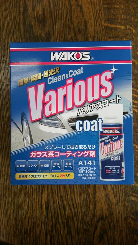 大人気の簡単・瞬間・超光沢Clean&Coat WAKO`S ガラス系コーティング剤『Various coat』 なんと!付属の専用クロスの「特殊マイクロファイバークロス」が <2枚入り>になりました! スタッフも愛用のバリアスコート、最後まで使っていると 専用クロスが汚れてきて使いづらいなんてことも><; で...