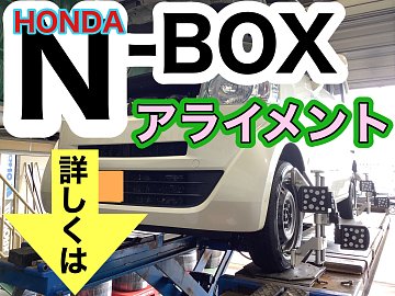 みなさんこんにちは☆ にゃんこ大戦争大好きボーイの母です。 さてさて今日は 『N-BOX アライメント』作業の ご紹介です。 それでは早速作業~~~~開始♪ まずは、測定を行い現状の確認です。 若干タイヤが外に向いている状態でした。 この状態では、タイヤが偏摩耗起こしたり まっすぐ走らなかった...