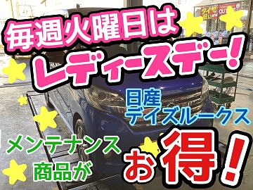 毎週火曜日はレディースデー!日産 デイズルークスのオイル交換です(*^^*)