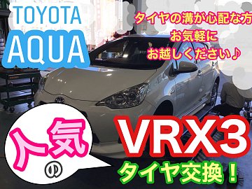 みなさんこんにちは☆ 今日はタイヤの溝が心配ということで 点検させていただき タイヤ交換をさせていただきました。 お車はトヨタのアクアです。 VRX3に組替えします! 抜けにくい窒素ガスを充填します! バランス調整しますよ! お取り付けは人気の センターフィット取付です(*^ω^*) タイヤワック...
