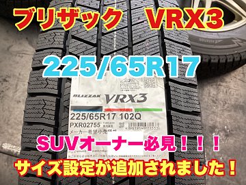 皆さんこんにちは(^^♪ 9月になりスタッドレスの ご予約が増えてきました。 そこで、昨年の事例ですが 改めてご紹介します。 2022年10月より【VRX3】が 新たにサイズ設定拡大されました\(^o^)/ これによりSUV車も使用用途によって タイヤの種類がお選びいただけます(^_-)-☆ 本日、商談させて頂いた...