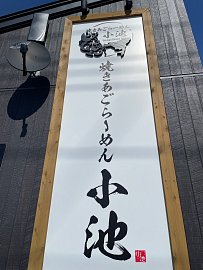 皆さんこんにちは(^^♪ なかなか忙しくいっていませんでしたが 久々に新規開拓って事で♪ 新潟市東区にある 『焼きあごらーめん小池』さんへ 行ってきました♪ こちらのお店は、席で注文制です。 さすが人気店。 待ちが多いですね。 外のウェルカムボードへ 名前と人数を記入して待ちます。 ほどなくし...